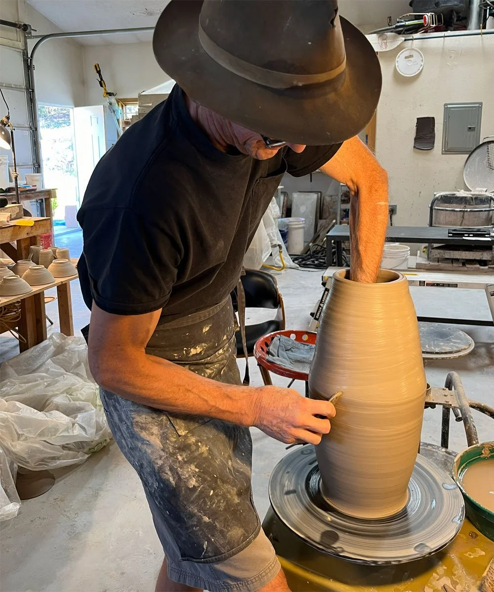 For the last twenty-five years I've been in the studio full-time. Since I learned clay by doing, through apprenticeship, I love being able to offer internships & work-trades to a few people at a time who are just starting, finding their way in clay, as I once was.