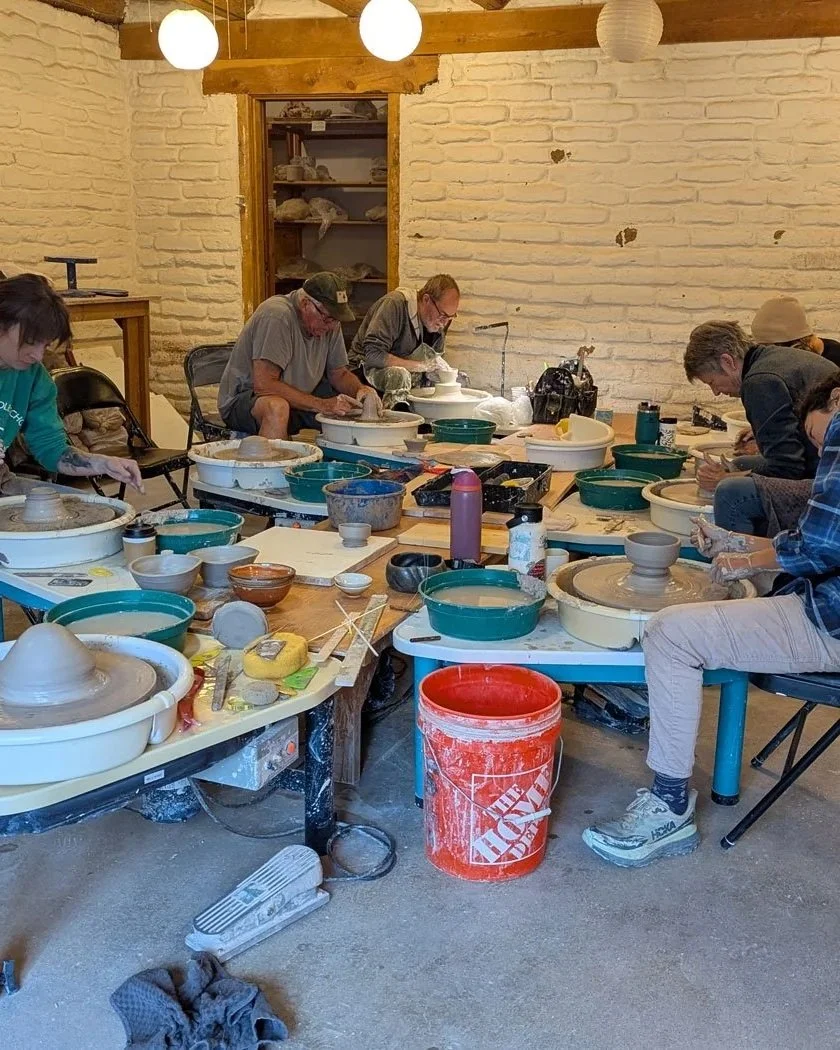 Moving from our quiet beginnings in Chimayo, New Mexico, down into Santa Fe, ten years ago the studio began offering one-time classes for travelers, then weekly classes, internships, and now we have two workspaces accommodating about fifty students & potters who work on their own, help load & fire kilns, take classes, and provide the energy & inspiration that keeps things evolving.